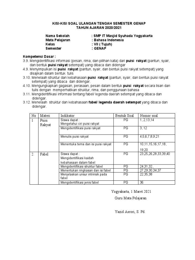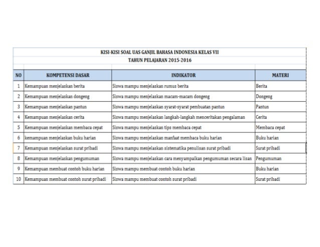 Kisi Kisi Bahasa Indonesia Kelas 7 - Contoh Kisi Kisi Soal Bahasa Indonesia Kelas 8 Semester 2 Jawabanku Id : Biasanya bapak dan ibu guru akan disibukkan dengan membuat soal untuk (pat) penilaian akhir tahun ujian akhir.. Ind kelas 7 semester 1/ ganjil kurikulum 2013.dapatkan kisi kisi penulisan soal ulangan tengah semester / penilaian tengah semester/ pts kelas vii mata pelajaran bahasa indonesia/ bi sesuai kurikulum 2013/ kurtilas/ kurikulum 2013 semester 1/ gasal tahun ajaran 2017 2018. Mahir menghadapi un smp/mts 2013/2014 bahasa indonesia. Sma negeri 4 muara teweh jumlah soal. Soal latihan menghadapi ulangan akhir semester (uas), ulangan kenaikan kelas (ukk) atau penilaian akhir semester (pas) materi bahasa indonesia kelas 7 smp / mts semester 2 (genap) tahun 2021. Biasanya bapak dan ibu guru akan disibukkan dengan membuat soal untuk (pat) penilaian akhir tahun ujian akhir.
