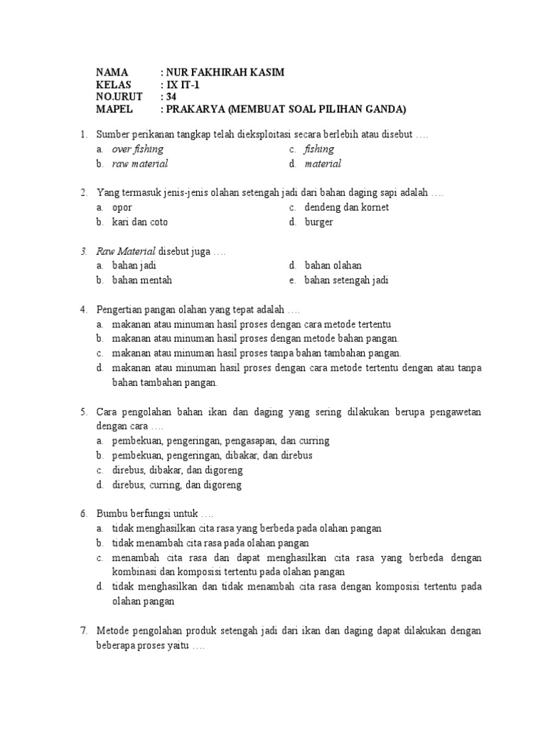 Soal Pengolahan Bahan Pangan Hasil Samping Buah Menjadi Produk Pangan - Doc Soal Prakarya Pengolahan Kelas Vii Dobit Damay Academia Edu / We did not find results for: